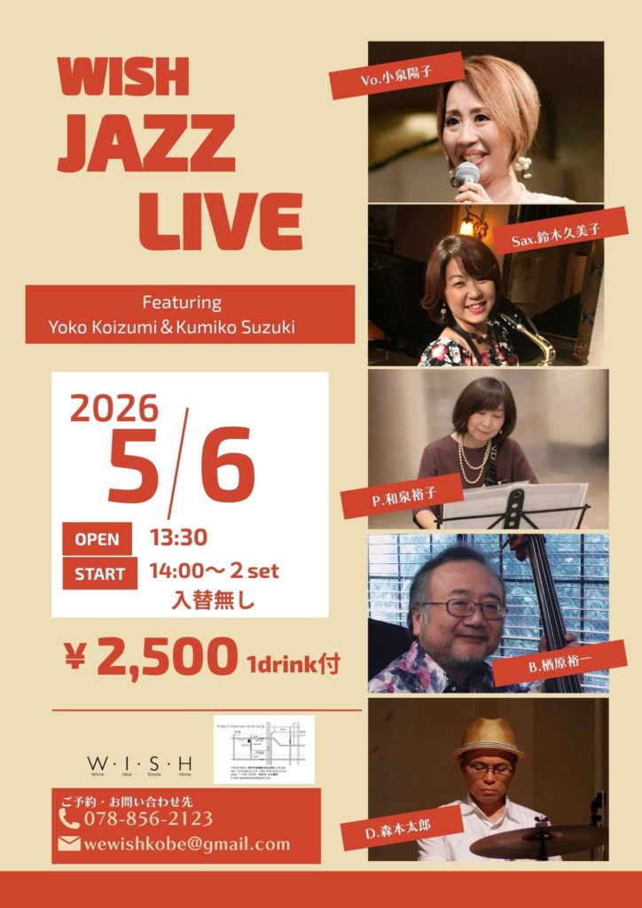 🔶 5月6日(㊗️水) 神戸住吉本町 W・I・S・H